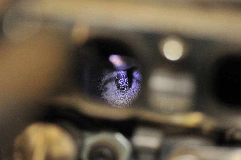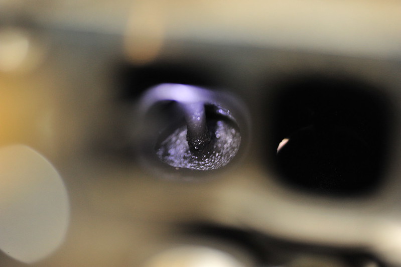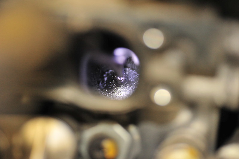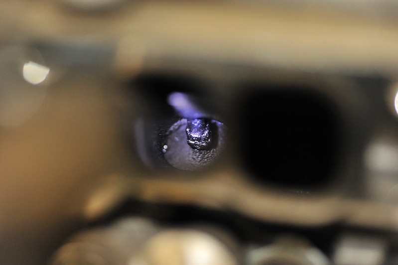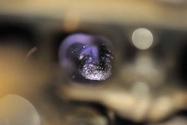 1) The 1" hose you used. Was it 1" ID or OD? I bought some 1"ID hose and could not cram it into either runner. When I do this again I'll be sure to have some smaller stuff on hand. 2) If you are buying the media blaster for this purpose and do not have a air compressor with a decent CFM rating, consider buying a dedicated media blaster from HF. That little gun is total crap. I had a 2-stage dryer on and it clogged non-stop using fine media. Gangster style or not. 3) I used a syringe to get the B12 out of the can and into the runners, 20cc fills the large one perfectly to the top of the stem and 17cc fills the small one. 4) Not having a fluid transfer pump nor a shop vac I'd want to let explode, I made this little venturi pump, and had the other end in a bucket with some rags. I cut a small slit in the side of the tubing stuck the tip about halfway in. I did the blasting first followed by B12 and still managed to nearly clog the tubing with the crap is sucked up. I have 130k miles and the previous owner never cleaned the valves. I wish my pictures came out better, the valves were just downright gooey. *no idea in that I have very little experience on cars but work on particle accelerators for my job and am very experienced taking things apart and keeping things clean and being careful. | |