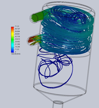 ![]() from the product release notes (in the link).... Many of you have followed the development as we moved through our design revisions beginning with our first concept, a titanium oil catch can that used stainless steel wool to separate out the oil and several versions in-between before we came to the design that we are happy to be releasing today. Unlike other catch cans on the market that simply expect the contaminates to fall out of the PCV vapors, our newly released oil catch can has a unique cyclonic vacuum design that forces contaminants to the walls of the can before the air can move back into the intake system. This Solidworks simulation shows how the system was designed.