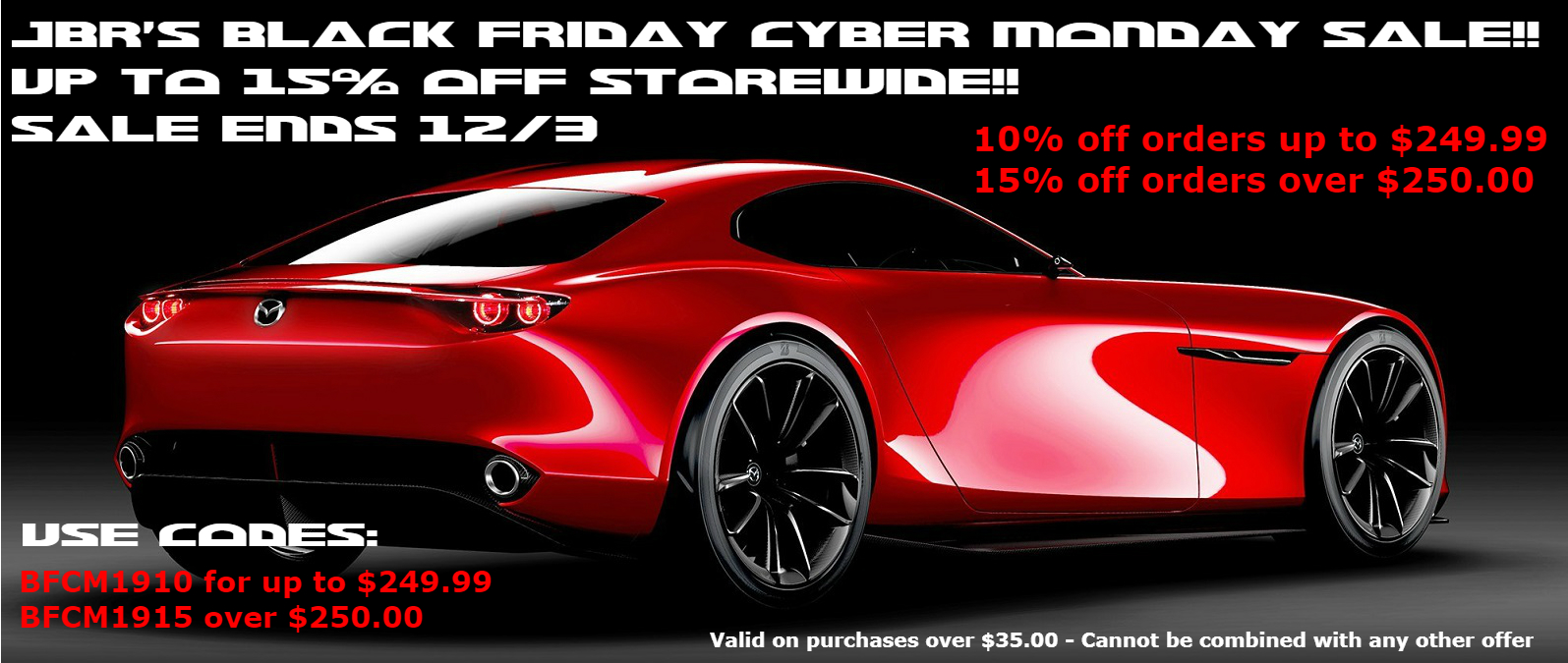 | JBR's Black Friday Cyber Monday Sales Event Starts NOW!! | JBR | JAMES BARONE RACING | 3 | 11-27-2017 02:07 PM |