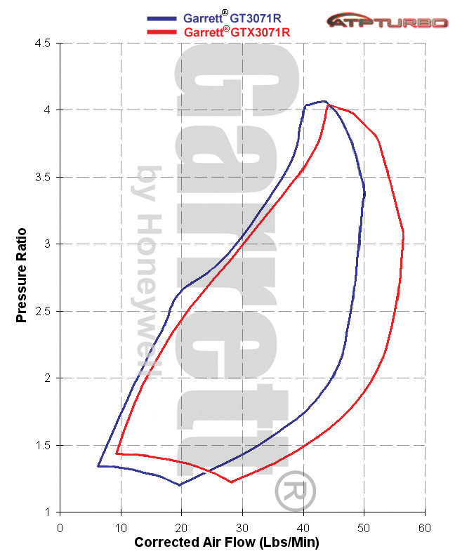 | Not Ranked : 0 score Ah, I see. The second VD plot shows you hitting 20PSI alot later than the other one. Was this done on purpose? Here is my math. The LBS/MIN value assumes 20PSI across the board. I then look at the RPM when you hit 20PSI on your VD plot and match it to the values on the table. ![]() So, 20PSI @ 3200 RPMS is ~21LBS/MIN and 20PSI @ 3700RPMS is ~23.5LBS/MIN. Looking at the GTX3071 compressor map at a 2.5 pressure ratio puts it very close to the surge line. Do you have a table where you worked out your math? I'd like to see your calculations. I'm asking because I have a 21PSI spring on my EWG setup and can hit 20PSI at 3200-3300 on spring pressure alone (which produces awesome response). My calculations have me a little worried on my GT3071R setup. Unfortunately, I can't hear any compressor surge (if it is surging) since the EWG is damn loud. I know on extremely high surge situations, boost can oscillate but my boost curve is very smooth and I'm unsure how the boost profile would react under mild surge.