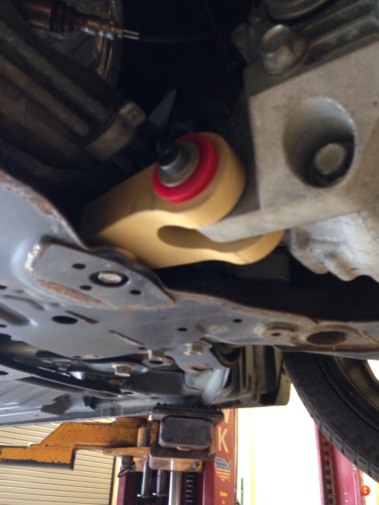 | Not Ranked : 0 score Alright, as promised, review as of today with maybe 20 miles on the new RMM. A little background... I had originally purchased and installed the JBR 88 and ran that for about 300 miles before going back to the stock w/ CS Inserts. The vibes made it race car worthy but the resonating noise as a result of the vibes was next to umbearable. The CS Inserts were fine, next to no vibes at all but just felt too soft and then I saw DM's RMM and had to have it. I am still running the stock PMM and TMM. Received the RMM in the mail and first thing I thought was holy crap this thing is heavy. That said its a beautiful piece of engineering, at looks good to although I was concerned to find a shoulder bolt but I held out and had faith. Had the mount sitting on my desk for about 4 days before I got a chance to install it, needless to say I was itching something fierce. Having no instructions I came back to the forum to see if anyone had any tips or pointers on torque requirements and say 40-45tq on the shoulder bolt and I felt much more at ease. Install went just as any previous RMM installs, with the exception of the shoulder bolt not being able to torque down. Got it as tight as I could and the bolt still easily spun. Reinstalled the bolt about 3 times all with the same result. After closer inspection it appeared approximately 1mm of the shoulder of the bolt was extending out past the end of the bushing and the provided washer did not clear the shoulder but instead while tightening down the should would start to dig in and deform the washer and it was starting to look like LatinKraze's and ear28's. As concerning as this was I recall reading those who had similar issues and resulted in clunking but without any anticipated damage to occur as a result, I decided to stick with it. Clunking was anticipated and clunking I had occasionally during initial acceleration, occasionally around turns while accelerating, and constantly when reversing. This was also accompanied by vibes through the frame, but I had to admit the resonance as noticed with the JBR was not present, so far so good clunking aside. After seeing others using various washers and lock washers to resolve this I decided to start digging and found a couple washers of my own but that would have to wait for tomorrow to fix. Install Day 2- Before attempting my own washers today I checked in to the thread again and saw that 7/16's washer should do the truth, this is when I found that the washers I was dug up were only 3/8 and wouldn't do any better than the provided one, so ran over to Lowe's and picked up a pack of 7/16's. I lostened the bolts for the mount to allow for movement and to add the new washer to the shoulder bolt. When I removed the supplied washer and nut and placed my own 7/16 washer in place I found that it fit perfectly over the extending part of the shoulder and allowing the provided washer to mount flush. I began tightening everything down and noticed that the 7/16 had slipped off the edge of the soulder and was presenting me with the same situation as with the provided washer, not being able to torque down the nut as needed. 2 attempts later I found that I had to slowly and carefully tighten the nut down to ensure the 7/16 washer remained in place. I was able to get everything torqued down to specifications including the 45tq on the shoulder bolt. After finishing I took her for a test drive. Vibes definitely still present but clunking completely gone and still no adverse resonance like with the JBR. Wondering if the vibes will settle as the bushings break in, but what I've felt and noticed thus far I would definitely be ok if they don't.